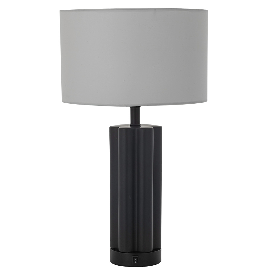 25"H Matte Black Glazed Ceramic to match RAL 9005 Table Lamp with added Matte Black to match Tiger Drylac 09-80130 base, medium base socket, on/off rocker base switch, 8' Silver 45° cord, 14.5"x14.5"x10" Cream Linen Hardback Shade with Rolled Edges with top acrylic diffuser, recommend 800 lumen LED bulb