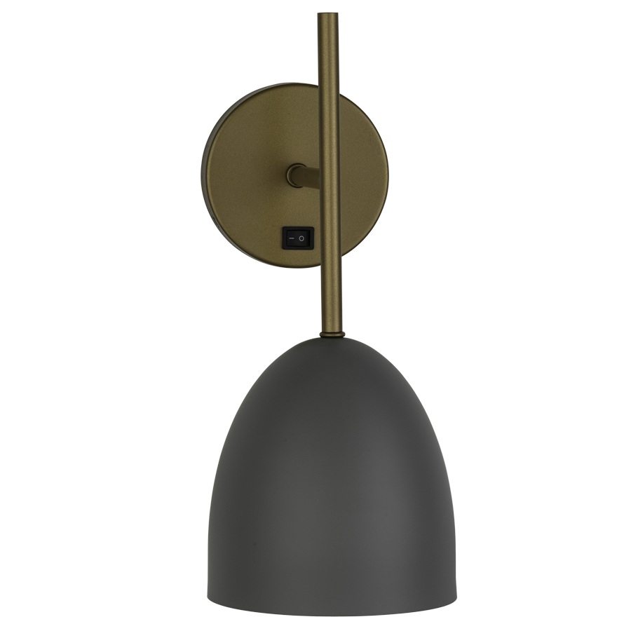 14"H Brass Powder Coat on Brushed Stainless Steel with 30% Sheen Headboard Sconce, medium base socket, on/off rocker switch at backplate, 8' Silver 45° cord exiting out back of lamp, Metal Shade in a Matte finish to match Sherwin Williams SW7622 Homburg, recommend 1100 lumen LED bulb
