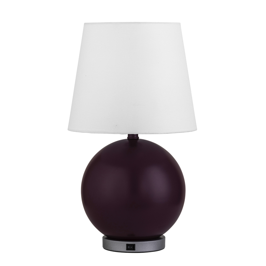 21"H Powder Coated RAL 350 30 40 Dried Flower Purple Matte Table Lamp with base to match Sparkle Silver Glossy 49/90450, medium base socket, on/off rocker switch, 6' Silver 45° cord, 9.5"x11.75"x10" White Linen Hardback Shade with Rolled Edges, recommend 800 lumen LED bulb