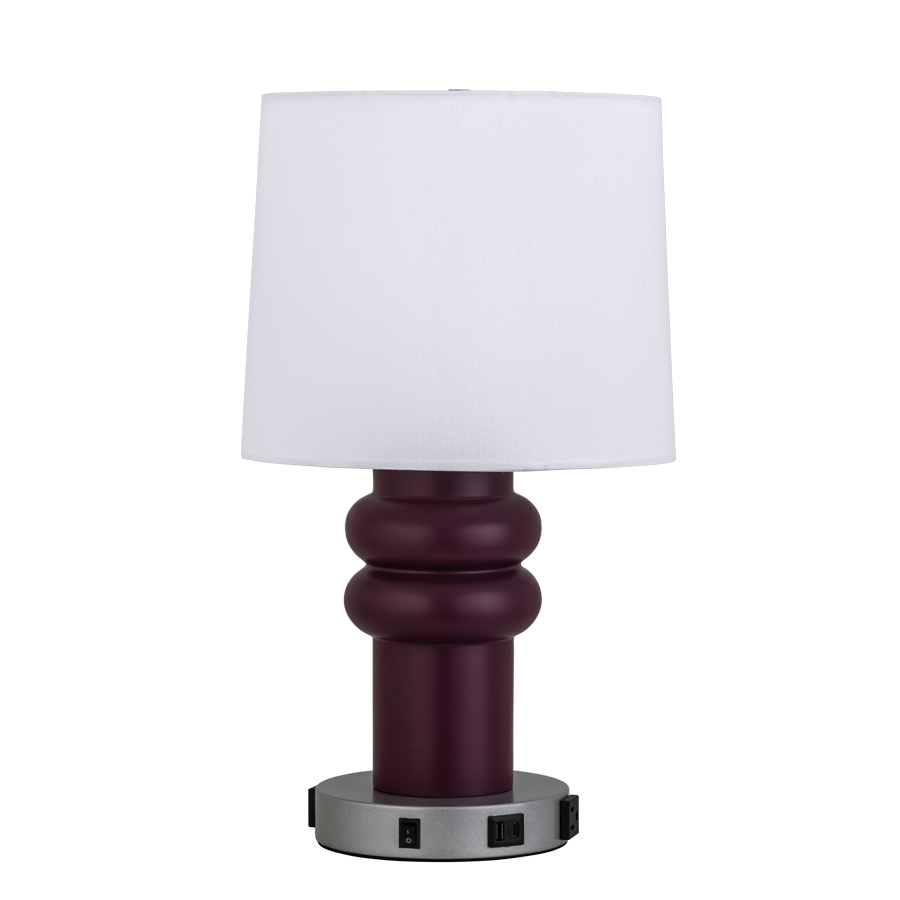21"H RAL 350 30 40 Dried Flower Purple Resin Table Lamp with Powder Coat Sparkle Silver Glossy 49-90450 base, medium base socket, on/off rocker base switch, two outlets, dual USB A +C, 6' Silver 45° 3-prong grounded cord, 11"x12"x10" White Linen Hardback Shade with Rolled Edges, recommend 800 lumen