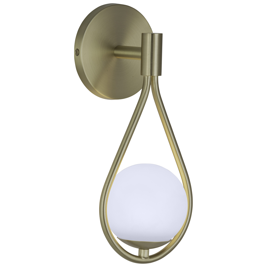 12"H Satin Gold Integrated LED Wall Lamp, 5 watt LED, 500 lumen, 3000K, 90CRI, 120V AC, direct wired, with White Frosted Acrylic Globe