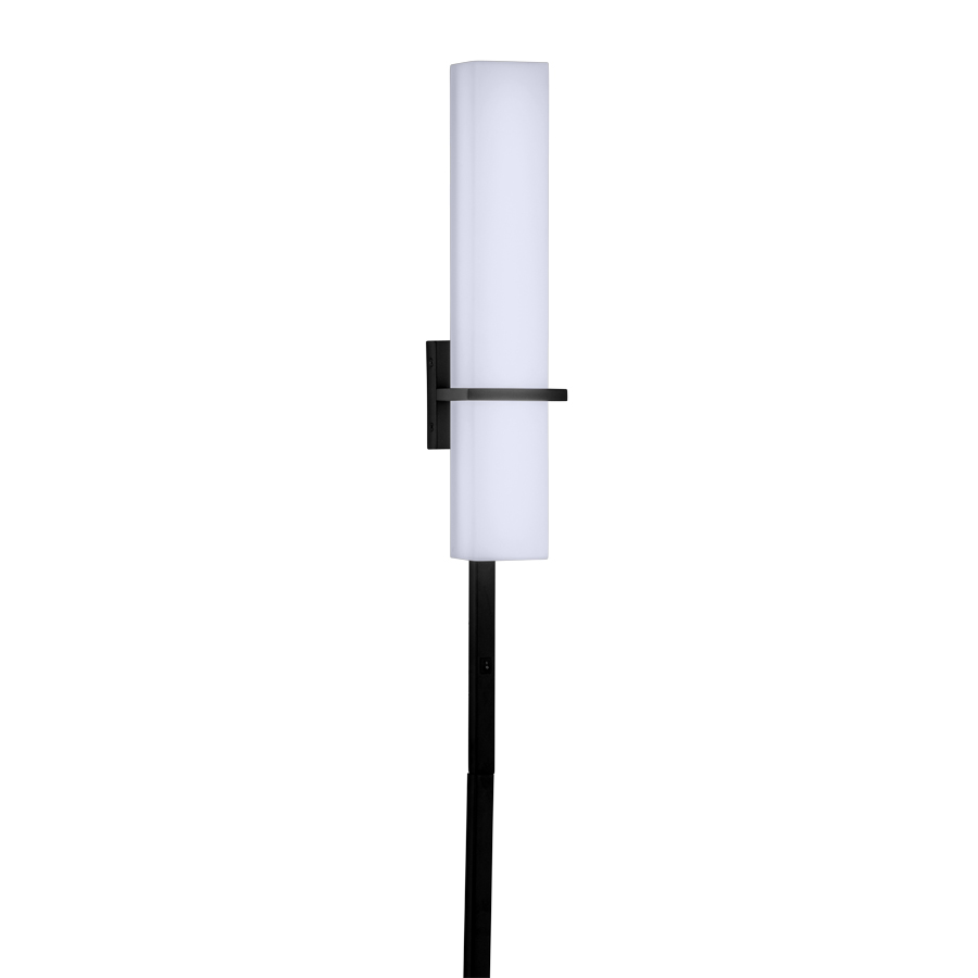 18"H Powder Coat to match Tiger Drylac Matte Black #39/80020 Integrated LED Wall Lamp, 9 watt LED, on/off mini rocker switch on cordcover, 8' Silver 45° cord exiting out bottom with 30" matching cordcover, with White Frosted Acrylic Shade
