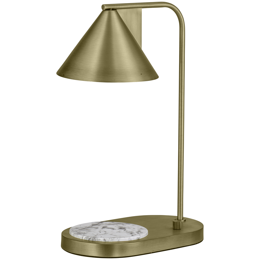 18"H Antique Brass Table Lamp with Water Transfer White Marble accent piece on top of base