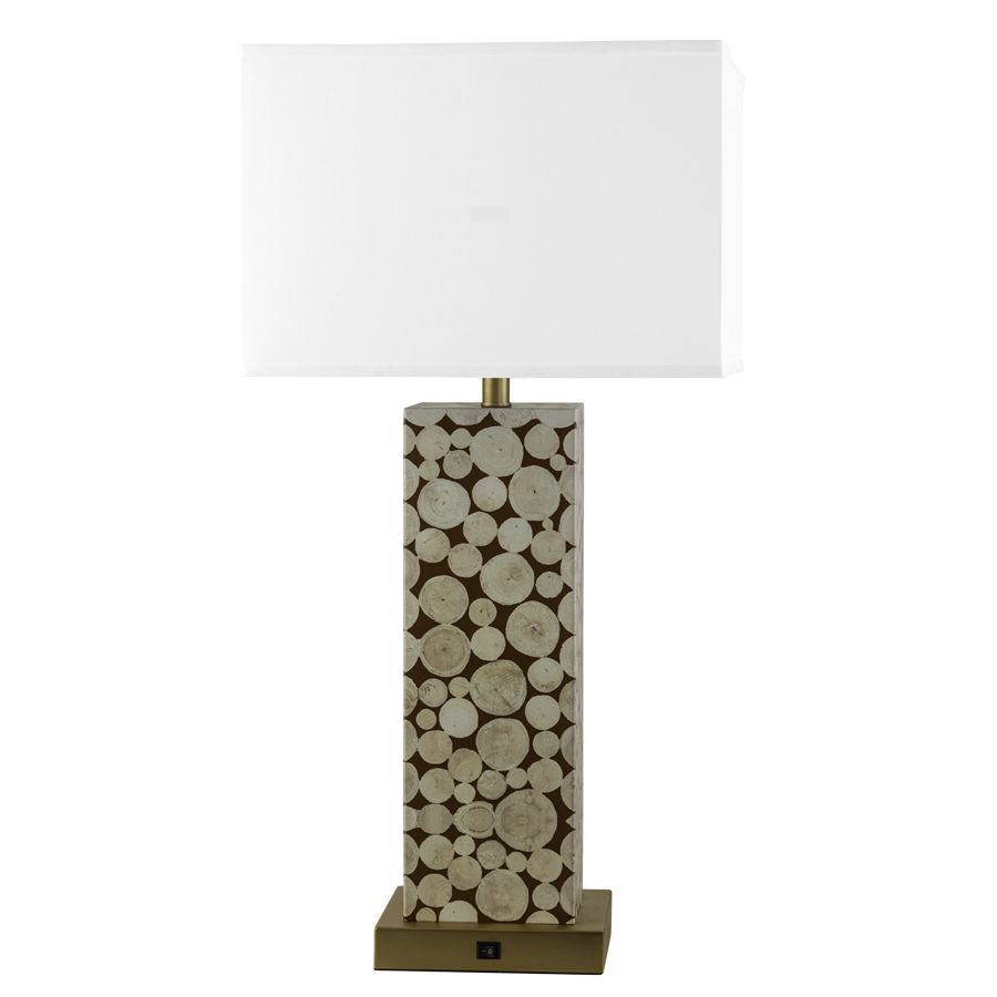 32"H Natural-Nevamar WZ6001T Dry Creek Plum Metal Column and Powder Coat to match Chemetal 704 Brushed Light Brass Aluminum Table Lamp, medium base socket, on/off rocker base switch, 8' Silver 45° cord, 16"x16"x16"x16"x11" Square White Linen Hardback Shade, recommend 1100 lumen LED bulb