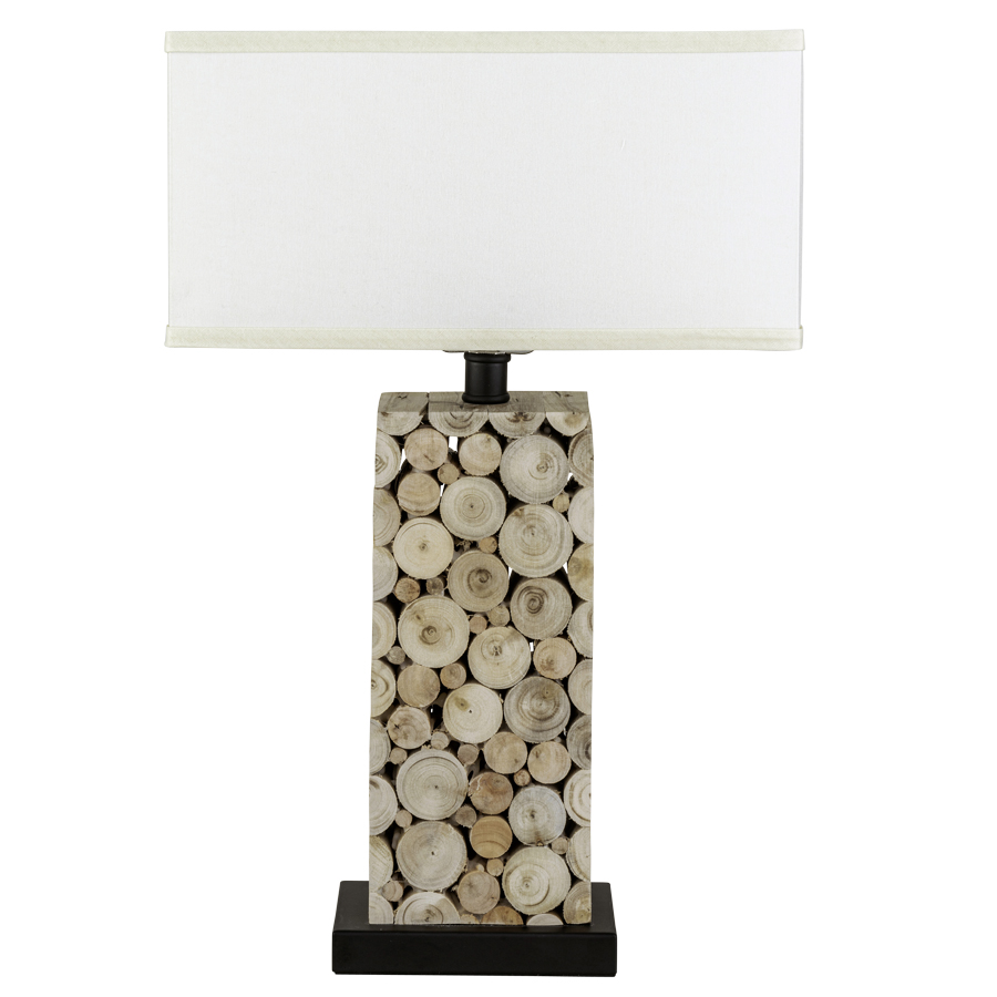 21"H Real Wood Column and Matte Black Table Lamp, medium base socket with push thru socket switch, 8' Silver 45° cord, 7"x14"x7"x14"x7" Rectangle White Linen Hardback Shade, with 6.5" harp & finial, recommend 1100 lumen LED bulb
