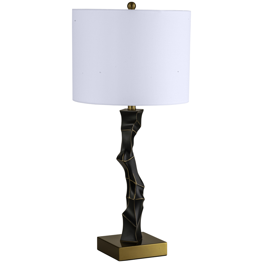 28.25"H Painted Black with Gold line and Plated Warm Brass Table Lamp