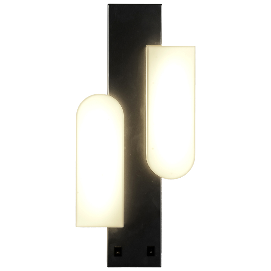 22"H Powder Coat Chrome Integrated LED Headboard Lamp, two 8 watt LED, 120V AC, two on/off rocker switches at backplate, 8' Silver 45° cord exiting out bottom with 20" cordcover, with two Matte White Frosted Acrylic Shades
