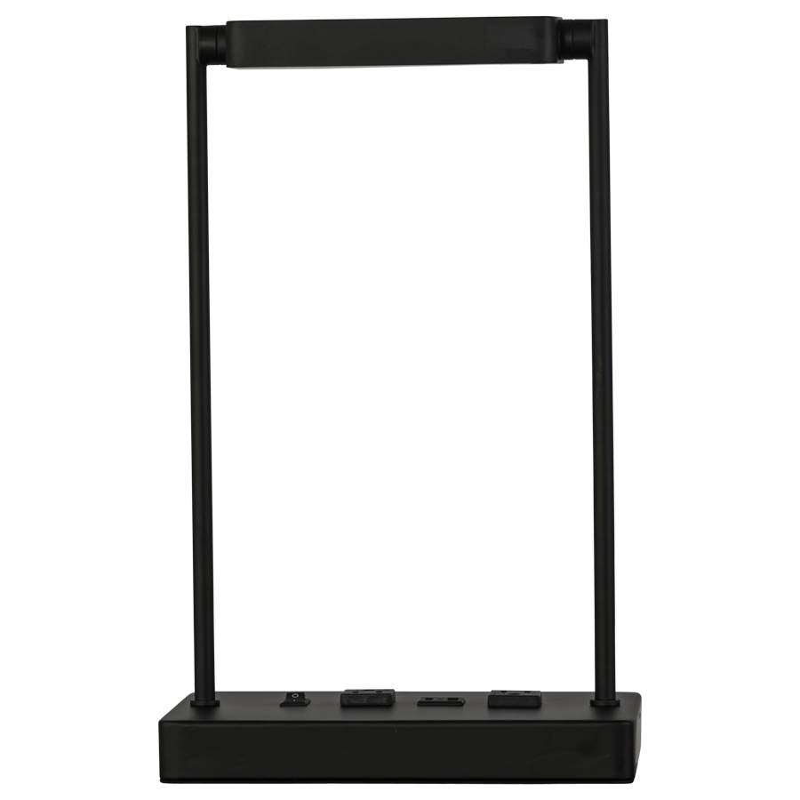 16"H Powder Coat to match Tiger Drylac Smooth Matte Black 09/80130 Integrated LED Table Lamp, 7 watt LED, 2700K, 120V AC, on/off rocker base switch, two outlets, Dual USB Port A + C, 12' Silver 45° 3-prong grounded cord, with Bolt Down, with Metal Shade and Matte White Frosted Acrylic Bottom Diffuser