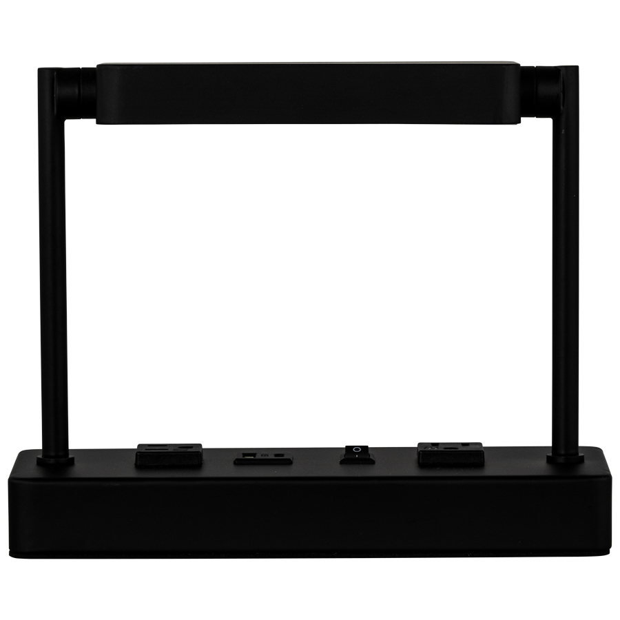 8"H Powder Coat to match Tiger Drylac Smooth Matte Black 09/80130 Integrated LED Table Lamp, 7 watt LED, 120V AC, on/off rocker base switch, two outlets, Dual USB Port A + C, 5' Silver 45° 3-prong grounded cord, Metal Shade and Matte White Frosted Acrylic Bottom Diffuser