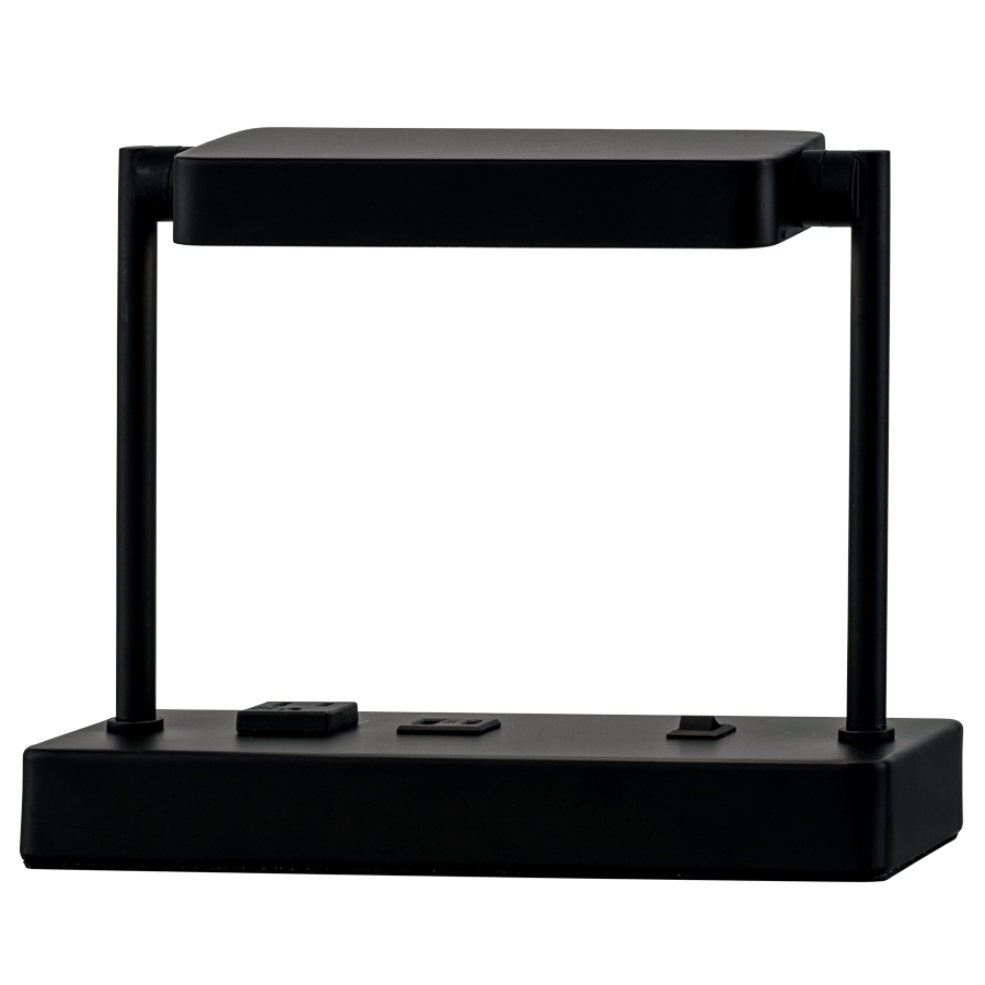 8"H Powder Coat to match Tiger Drylac Smooth Matte Black 09/80130 Integrated LED Table Lamp, 7 watt LED, 120V AC, on/off rocker base switch, one outlet, Dual USB Port A + C, 5' Silver 45° 3-prong grounded cord, with Metal Shade and Matte White Frosted Acrylic Bottom Diffuser