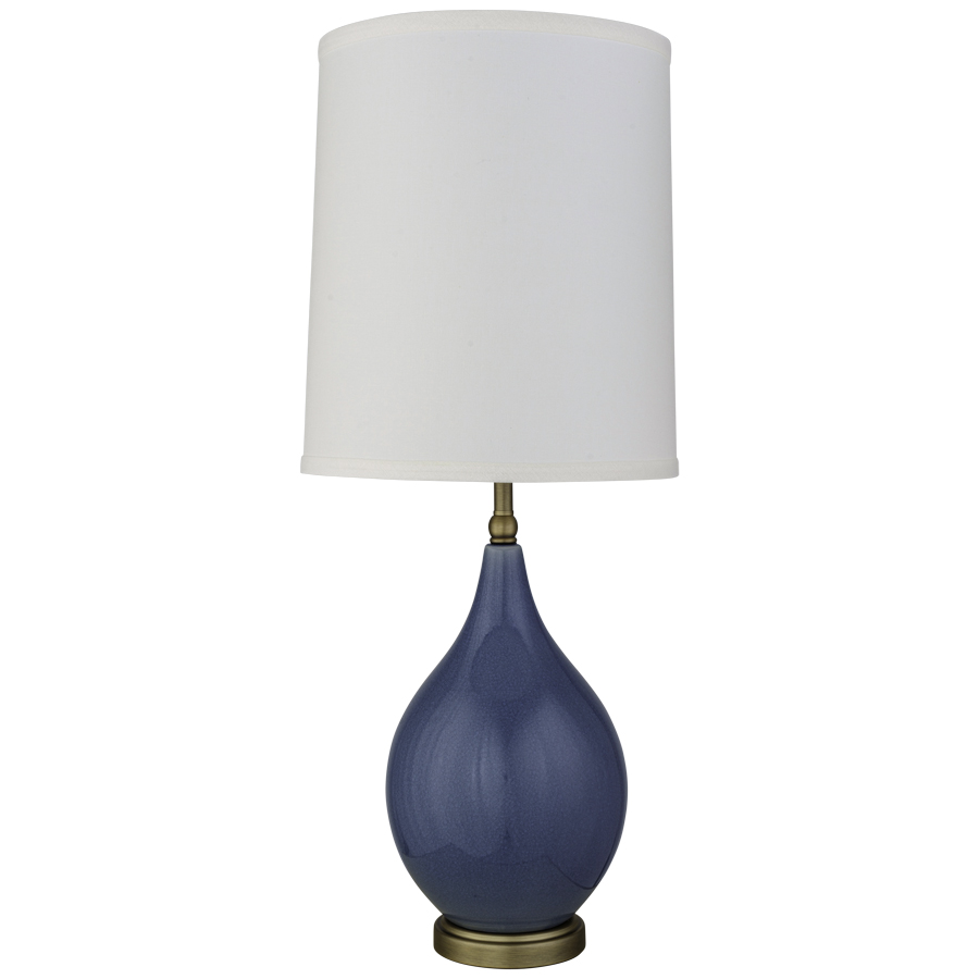 29"H Dyers Woad SW9071 Crackle Ceramic Table Lamp with Aged Brass accents and base, medium base socket with dimmer switch, 8' Silver 45° cord, includes 11"x12"x13.5" Cream Linen Hardback Shade with top acrylic diffuser, recommend 800 lumen LED bulb