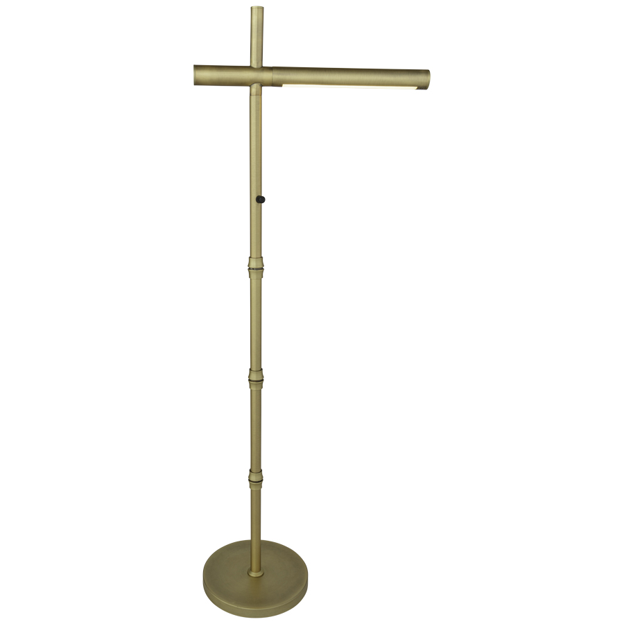 50"H Aged Brass Integrated LED Floor Lamp with Bamboo Texture Detail accents, 15 watt LED, 3000K, 90CRI, 120V AC, rotary dimmer switch on column @ 36"AFF, 15' Silver 45° cord, with Metal Shade with White Frosted Acrylic bottom diffuser