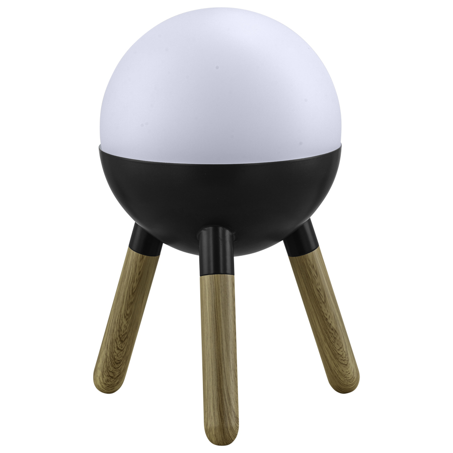 11.75"H Powder Coat Dark Grey Aluminum Table Lamp with Water Transfer Wood legs, medium base socket, 10' Silver 45° cord with rocker switch, with White Frosted Acrylic Globe,recommend 1100 lumen LED bulb