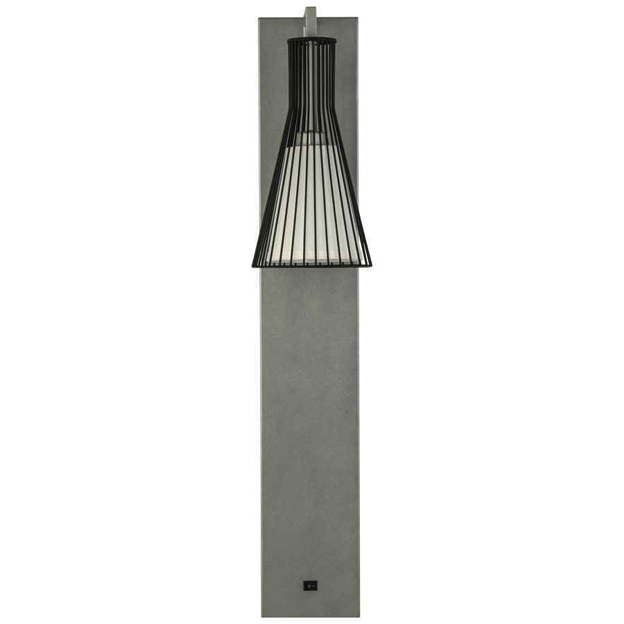 36"H Metallic Silver Wall Lamp, GU24 Socket, on/off rocker switch at backplate, Direct Wired, Matte Black Metal Cage Shade with White Linen Inner Shade, recommend 1100 lumen LED bulb with GU24 base
