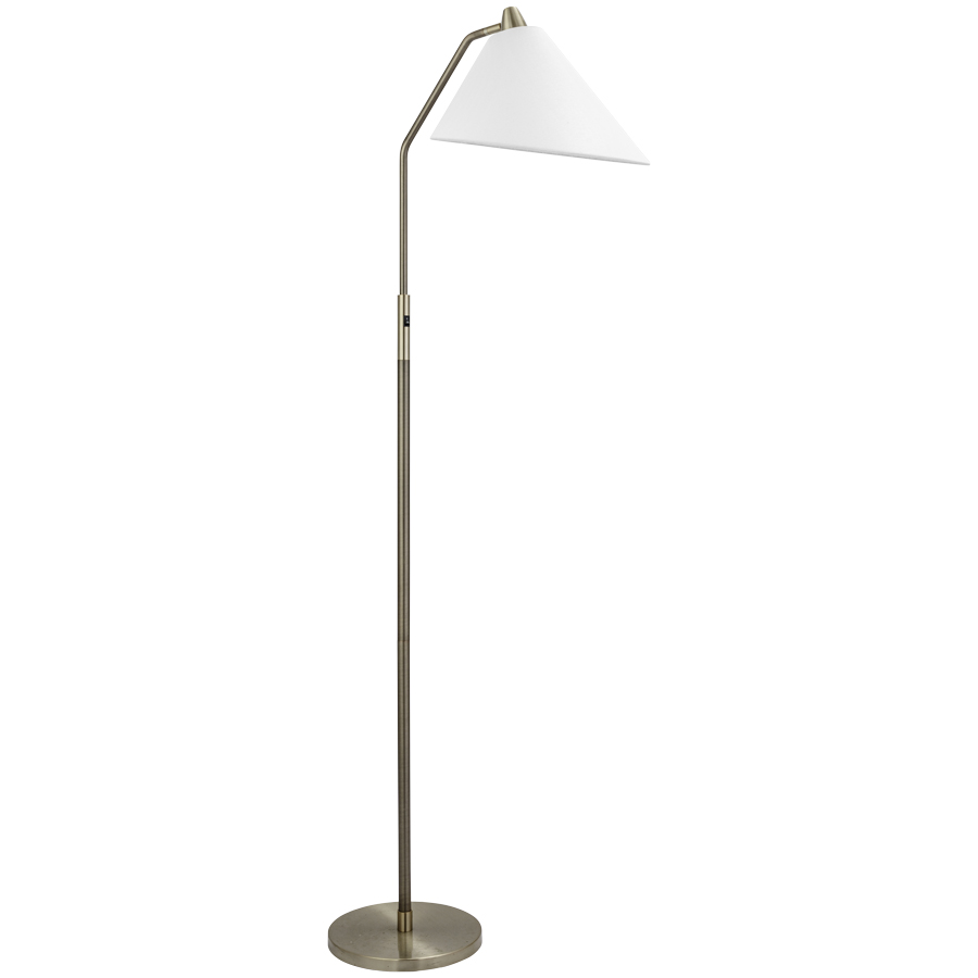 69"H Plated Dark Bronze and Champagne Bronze Floor Lamp, medium base socket, on/off rocker switch on column @ 48"AFF, 8' Silver 45° cord, 4"x15"x12" White Linen Flared Shade with Rolled Edges, recommend 1600 lumen LED bulb