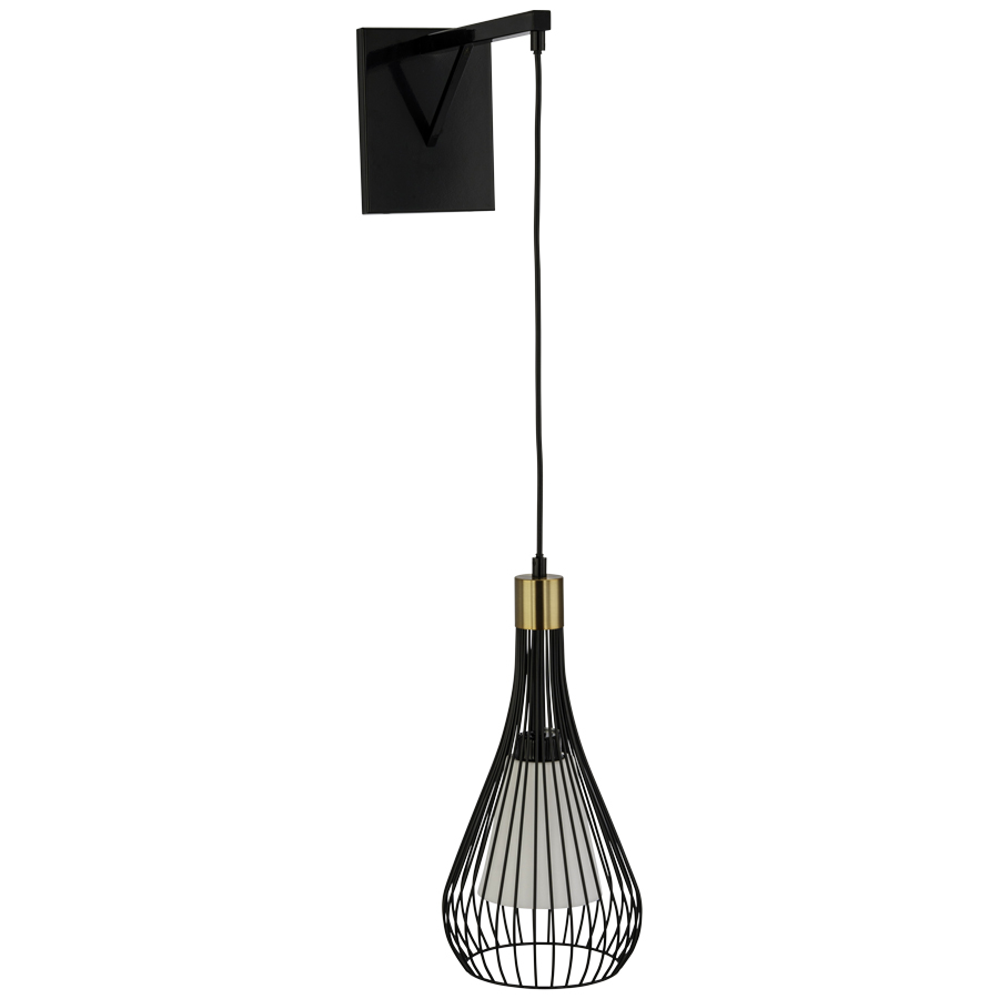 38"H Satin Black Aluminum #908 and Antique Brushed Brass #310 Wall Lamp, medium base socket, direct wired, Metal Cage Shade with White Frosted Acrylic Inner Shade, recommend 1100 lumen LED bulb