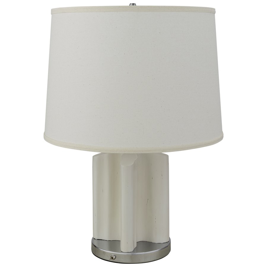 24"H Plaster White and Plated Chrome Table Lamp, medium base socket, on/off toggle switch on base, 6' Brown 45° cord, includes 13"x15"x15"x17"x12" Oval Natural Linen Hardback Shade, recommend 800 lumen LED bulb