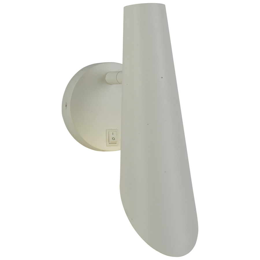 11"H Powder Coat White Integrated LED Wall Lamp, 8 watt LED, 120-277V, 12V~24V, on/off rocker switch at backplate, direct wired, with rotatable metal shade and White Frosted Acrylic diffuser