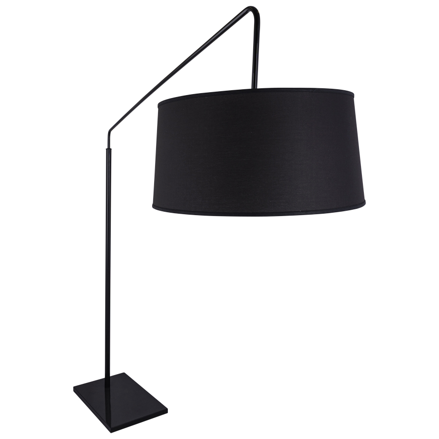 88.5"H Powder Coat Gloss Black Floor Lamp, medium base socket, 6' Black 45° cord with foot switch, 23"x25"x12.5" Black Linen Hardback Shade with top and bottom acrylic diffuser, recommend 1100 lumen LED bulb. Ships Knock Down on site assembly required.