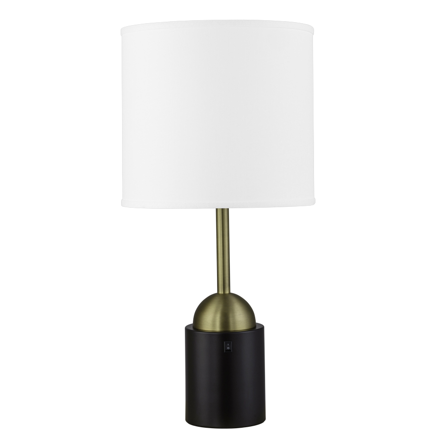 29"H Powder Coat Bronze and Plated Antique Brass Table Lamp, medium base socket, on/off rocker base switch, 10' Silver 45° cord, 14"x14"x13" White Linen Hardback Shade, recommend 1100 lumen LED bulb