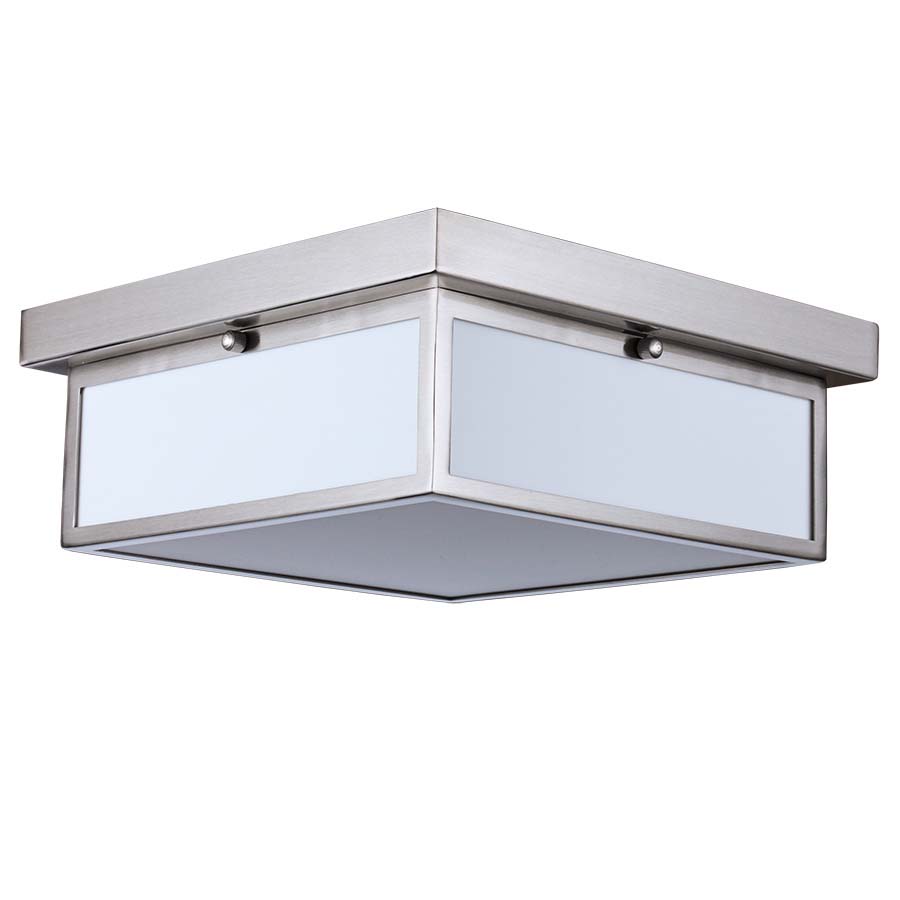 12" Brushed Nickel LED Ceiling Fixture, 850 lumen Cree LED module and driver, 2700K, direct wired, White Frosted Acrylic diffuser, Made in USA. Also available with 1250 lumen module or Stainless Steel powder coated finish. 5 year warranty on lighting components.