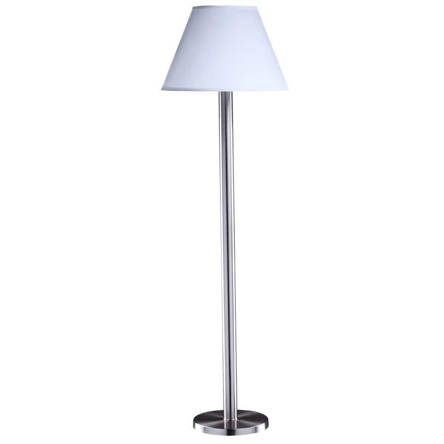 60" Powder Coat Silver Gold Floor Lamp, medium base socket with push thru socket switch, 15' Silver 45° cord, with 9x18x12 1/2 White Linen Hardback Shade. Recommend 1100 lumen LED bulb. (finish not shown in picture)