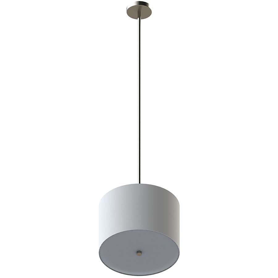 16x16x11 Drum Pendant, White Linen, Two GU24 Sockets, Brushed Nickel Canopy and Down Rod, Bottom White Frosted Diffuser