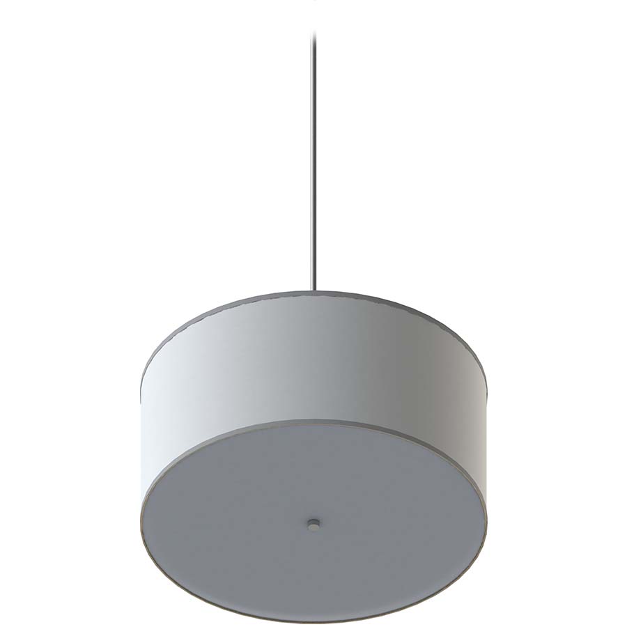 30"x30"x14" Drum Pendant, White Linen Shade with Smoke Grey Trim, Four GU24 Sockets, Brushed Nickel Canopy and Down Rod, Bottom Diffuser