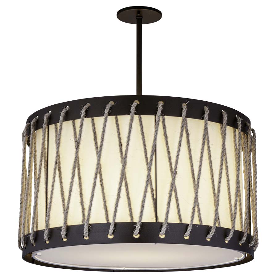 24x24x14.5 Woven Rustic Rope, 22x22x14 Cream Linen Shade Dual Layer Round Pendant Naples Bronze Finish