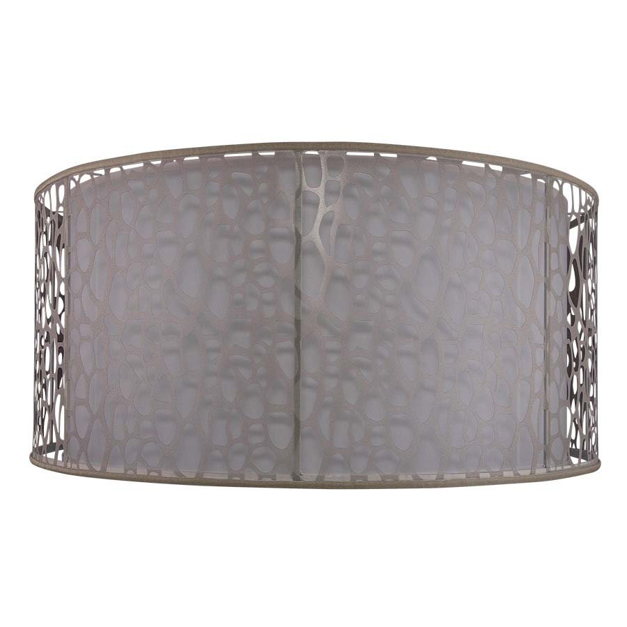 Two Layer Pendant, four medium base sockets, 60x60x18 Khaki Linen Outer Shade with pebble cut pattern with a 54x54x18 White Linen Inner Shade, Brushed Nickel Canopy and Down Rod with bottom diffuser. Recommend four 1100 lumen LED bulbs.