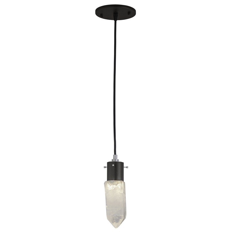 Arkansas Quartz mini Pendant with Naples Bronze canopy and accent pieces, integrated LED board, direct wired, adjustable cord hung