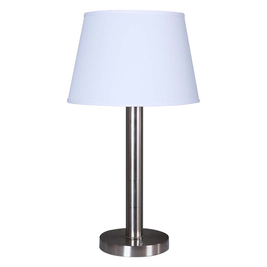 27" Brushed Nickel ENERGY STAR certified Table Lamp, medium base socket, on/off rocker base switch, 8' Silver 45° cord, 6"x18"x11.5" White Linen HB Shade, one 11 watt LED bulb, 3000K