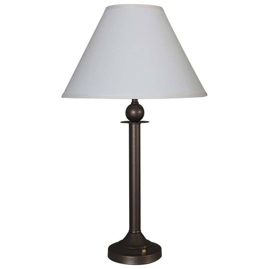 28" Powder Coat Naples Bronze Table Lamp, medium base socket, on/off rocker base switch, 8' Silver 45° cord. Includes 6"x16"x10.5" Natural Linen Hardback Shade. Recommend 1100 lumen LED bulb. (finish not shown in picture)