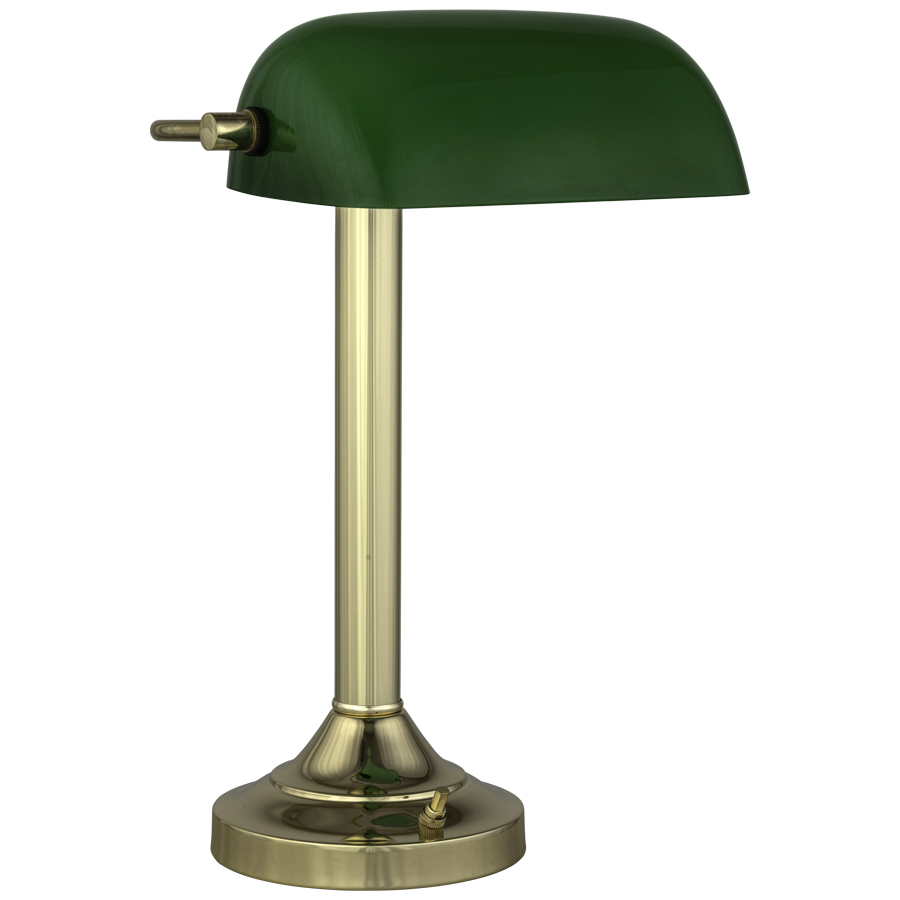 16" Brass Bankers Lamp, medium base socket, on/off brass push button base switch, 8' Black 45° cord, with Green Glass Shade. Recommend 1100 lumen bulb.
