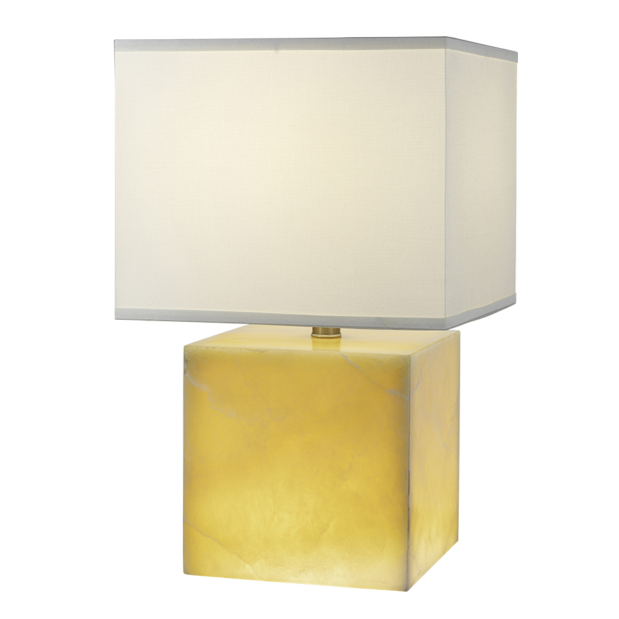 22.5"H Amber Square Onyx Table Lamp, medium base socket outside, medium base socket inside, 8' Silver 45° 2-prong Cord, with 14"x14"x14"x14"x11.5" Milano Cream Hardback Shade, double rocker switch on cord, recommend 1100 lumen LED bulb