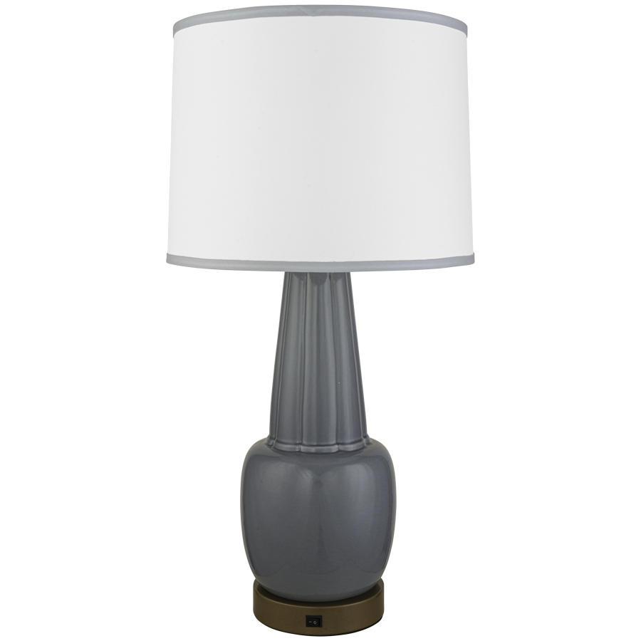 29"H Cotton Crackle Ceramic to match BM Harbor Haze 2136-60 Table Lamp with Powder Coated Sungold base and neck, medium base socket, on/off rocker base switch, 8' Silver 45° cord, 15"x16"x12" White Linen Hardback Shade, White Acrylic Upper Diffuser, recommend 1100 lumen LED bulb