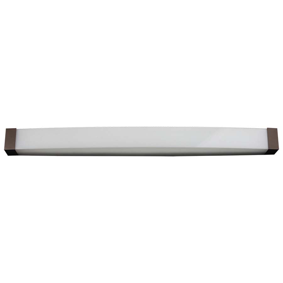 49" LED Ready Naples Bronze Vanity Fixture, White Silk Screen Acrylic Diffuser. Recommend one 15 watt T8 LED linear Non-Shunted bulb (bulb not included, fixture will not work with fluorescent bulbs)