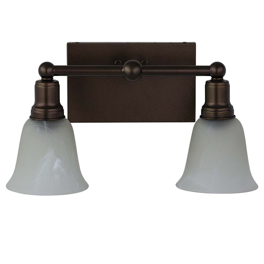 Naples Bronze Two Light Vanity Fixture, 2 medium base sockets, 18.25"W, 9.5"H, with White Swirl Glass Diffusers. Recommend two 800 lumen LED bulbs. (Numode finish can be applied to backplate) (finish not shown in picture)