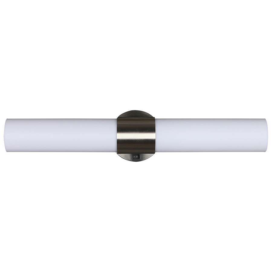 24"W Brushed Nickel 2-Light Wall Lamp with Frosted White Acrylic Diffusers, two GU24 sockets, on/off rocker switch at backplate, direct wired. Recommend two 8 watt PL or 11 Watt LED PL bulbs with GU24 base. (bulbs not included)