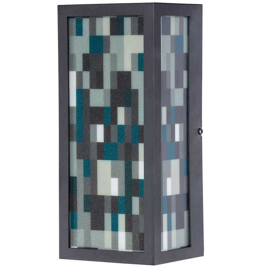 10x4.5" Multi-Colored Framed Teal and Gray Acrylic Wall Sconce, GU24 socket, Direct Wired. Recommend 8 watt LED PL Style bulb with GU24 base. Custom printed design, can be altered to any pattern and color combination.