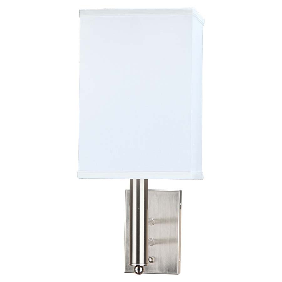 18"H Single Brushed Nickel Wall Lamp, medium base socket, on/off rocker switch at backplate, 8' Silver 45° cord, 24" matching cord cover, 5.5x7.5x5.5x7.5x11 Cream Linen Hardback Shade. Recommend 1100 lumen LED bulb